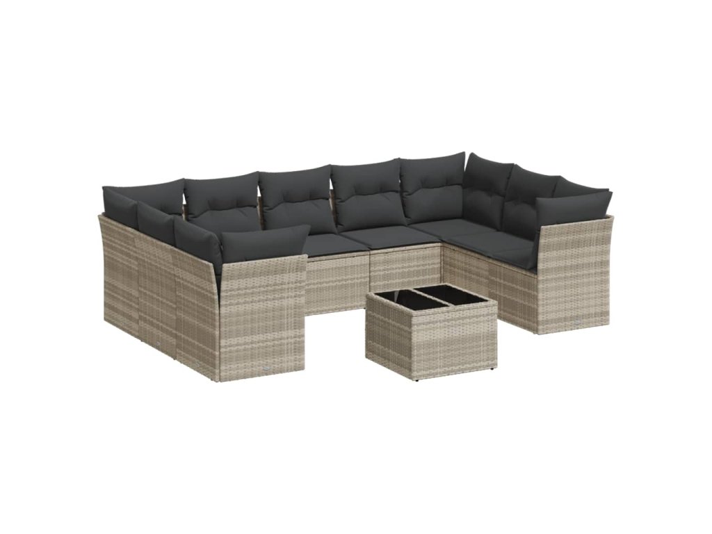 10dílná zahradní sedací souprava podušky světle šedá polyratan 3218142