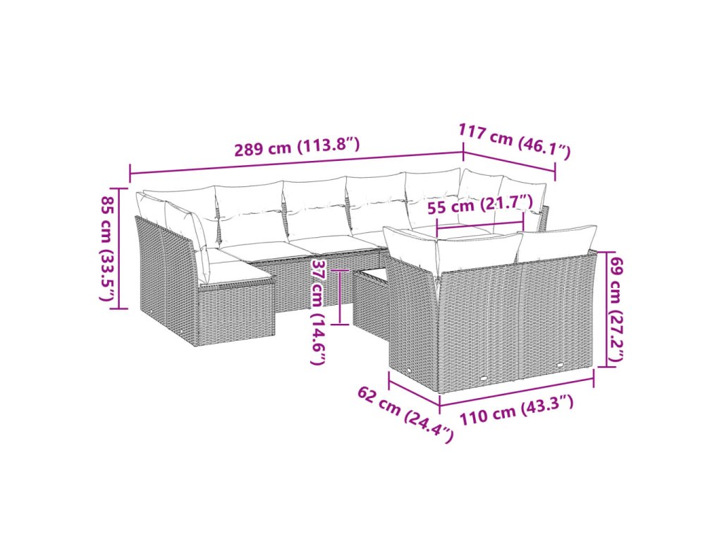 Tato zahradní sedací souprava je dokonalým doplňkem vaší zahrady, terasy nebo dvorku a poskytne vám pohodlné a příjemné místo, kde si můžete povídat s rodinou a přáteli nebo jen tak odpočívat a užívat si pobyt venku.