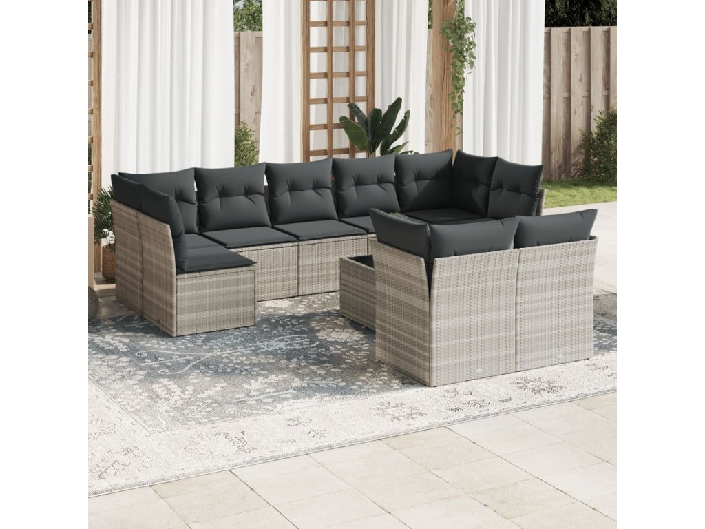 10dílná zahradní sedací souprava podušky světle šedá polyratan 3218162