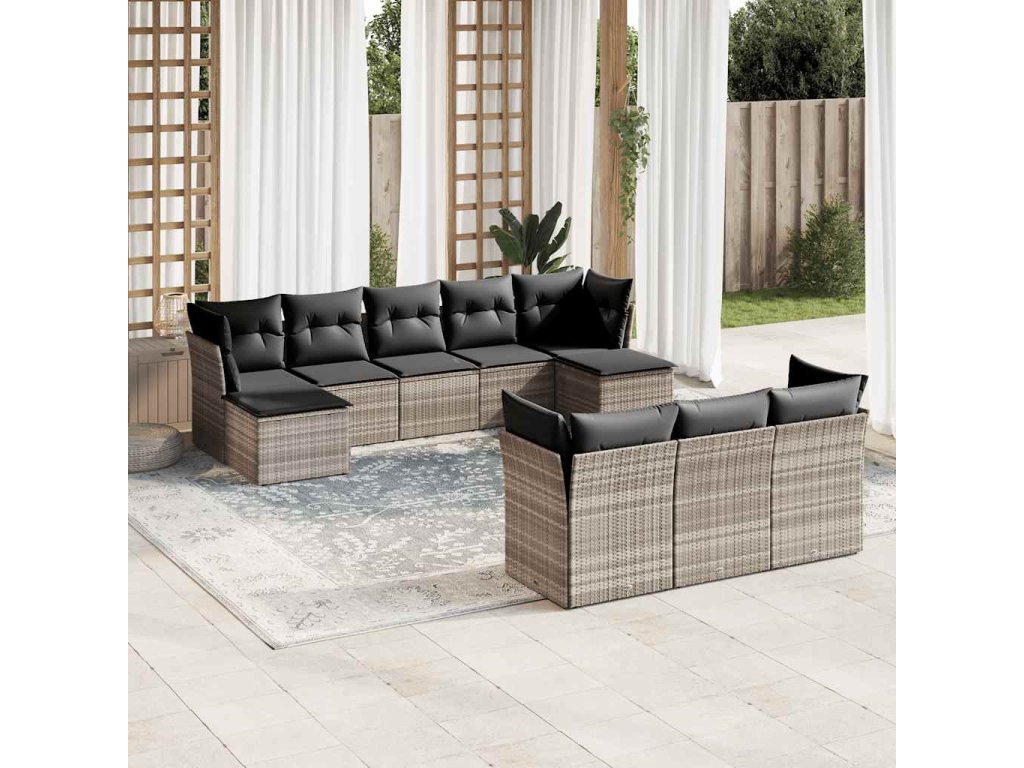 10dílná zahradní sedací souprava podušky světle šedá polyratan 3218332