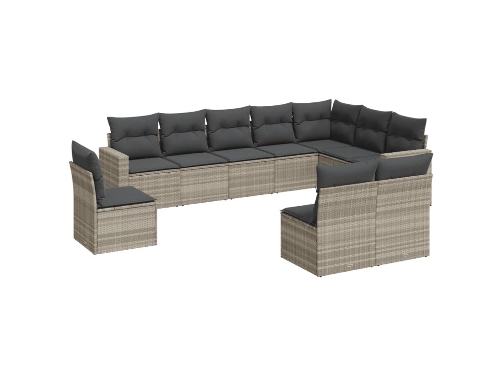 10dílná zahradní sedací souprava podušky světle šedá polyratan 3219102