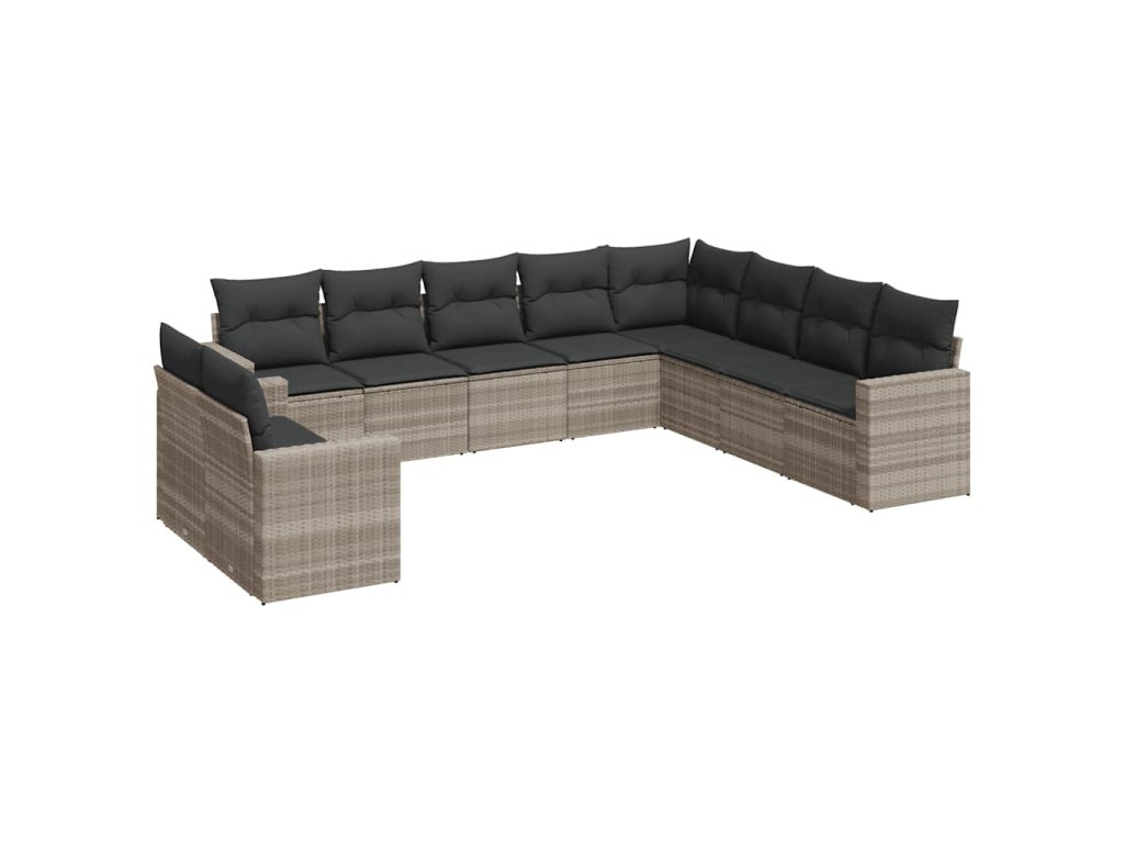 10dílná zahradní sedací souprava podušky světle šedá polyratan 3219162