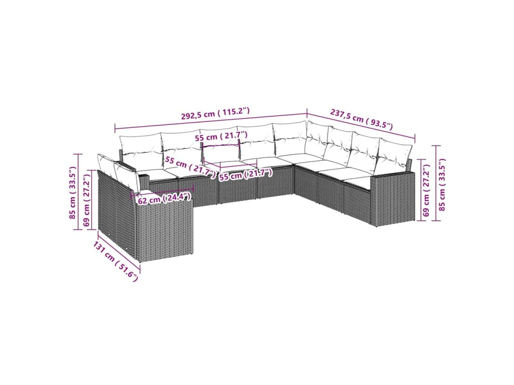 Tato zahradní sedací souprava je dokonalým doplňkem vaší zahrady, terasy nebo dvorku a poskytne vám pohodlné a příjemné místo, kde si můžete povídat s rodinou a přáteli nebo jen tak odpočívat a užívat si pobyt venku.