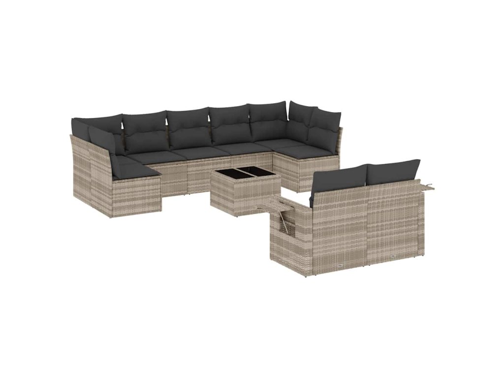 10dílná zahradní sedací souprava podušky světle šedá polyratan 3220631