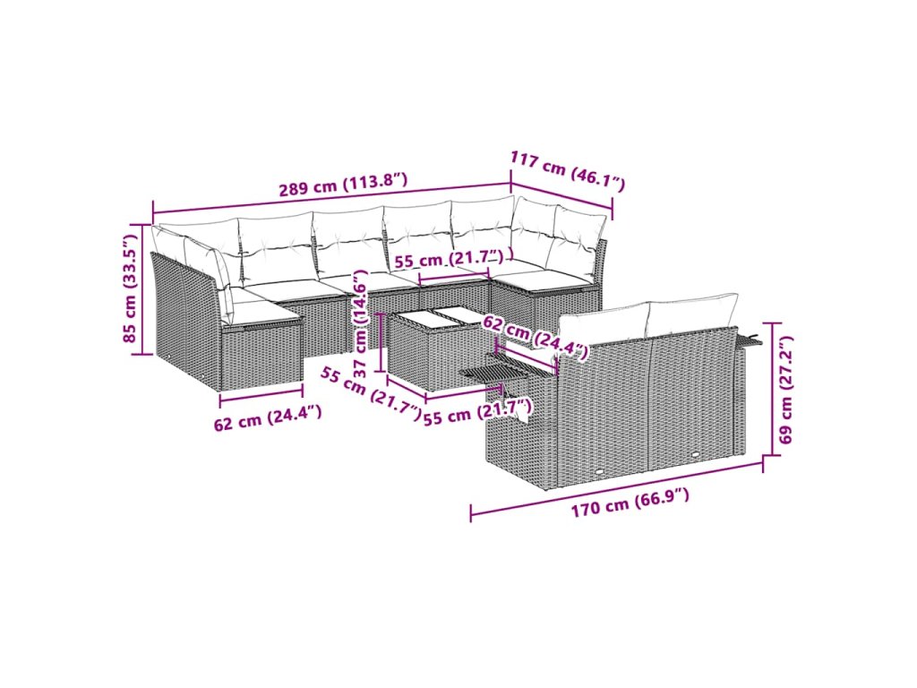 Tato zahradní sedací souprava je dokonalým doplňkem vaší zahrady, terasy nebo dvorku a poskytne vám pohodlné a příjemné místo, kde si můžete povídat s rodinou a přáteli nebo jen tak odpočívat a užívat si pobyt venku.