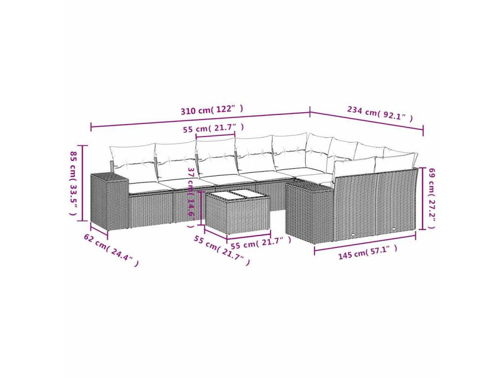 10dílná zahradní sedací souprava podušky světle šedá polyratan 3223051
