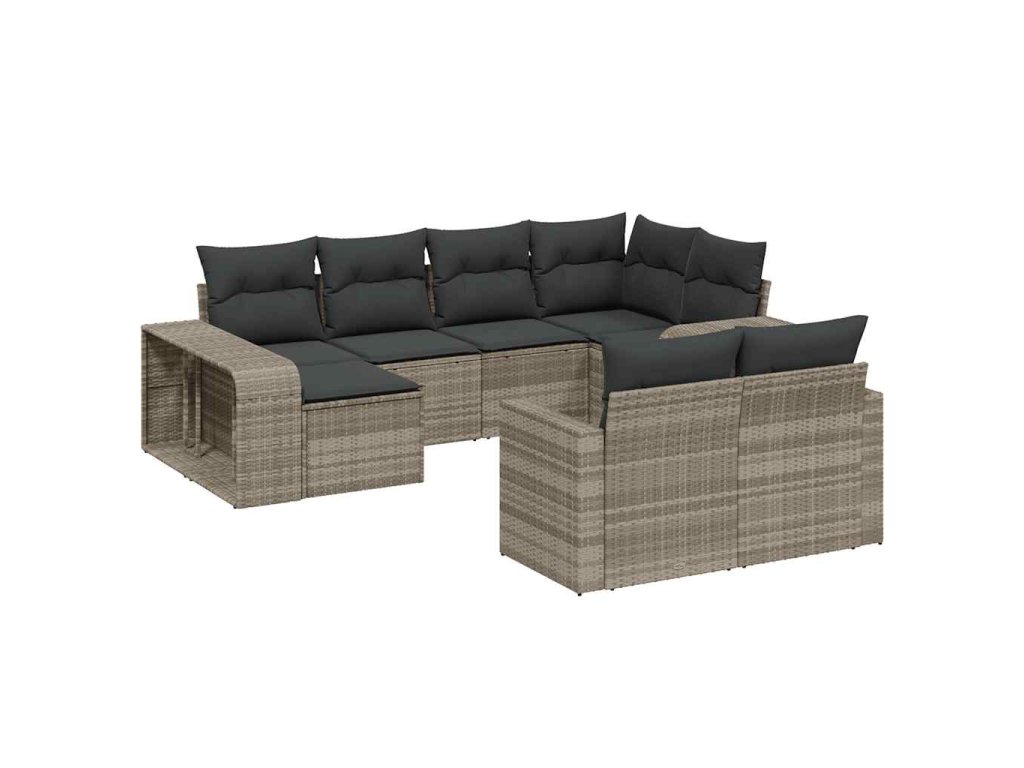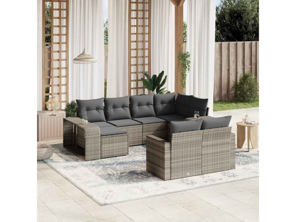 10dílná zahradní sedací souprava podušky světle šedá polyratan 3228902