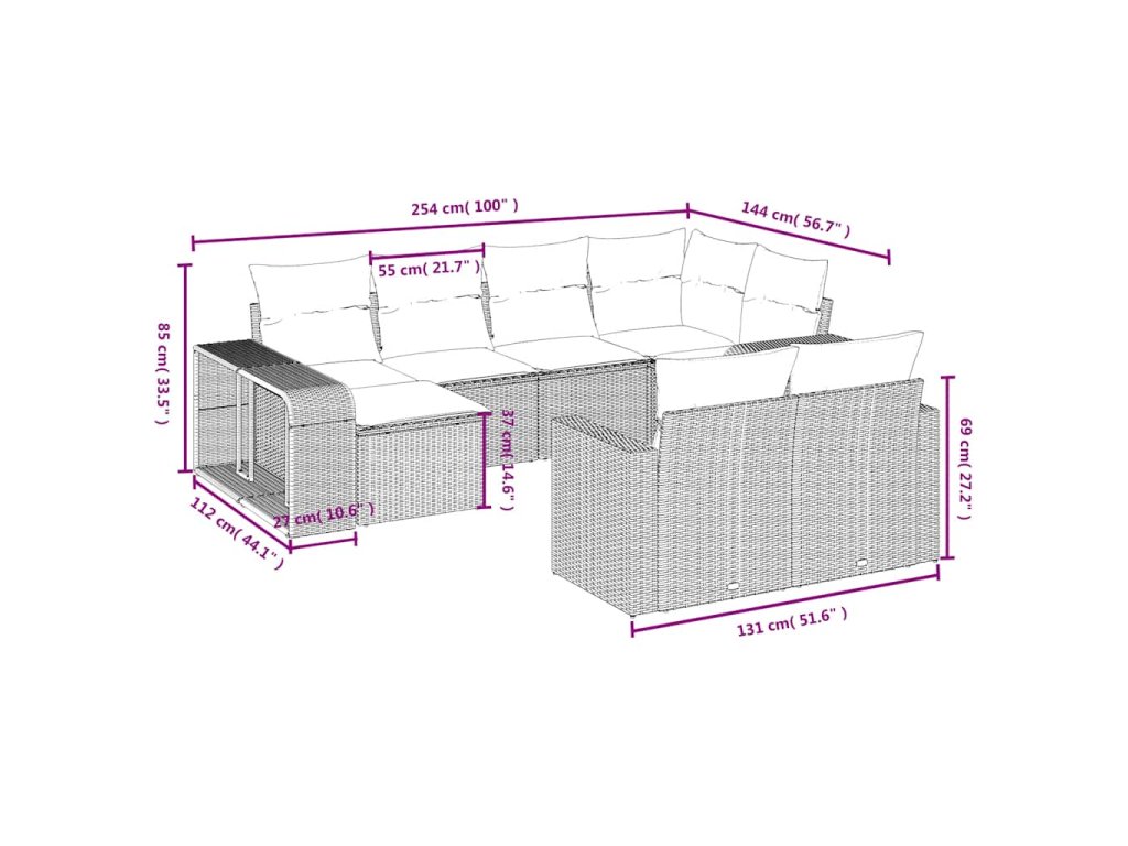 - Modulární design: Tato sada venkovního nábytku se vyznačuje modulární konstrukcí, je tedy zcela flexibilní a lze ji snadno přemisťovat, takže si můžete uspořádat venkovní nábytek dle vašich potřeb.