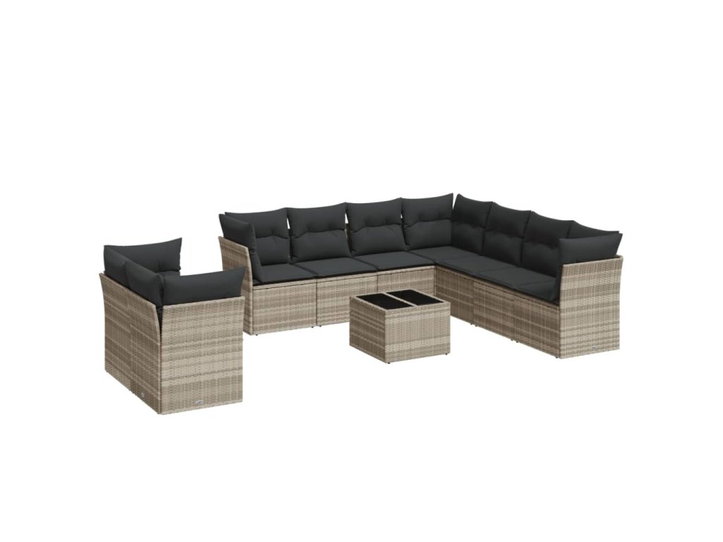 10dílná zahradní sedací souprava podušky světle šedá polyratan 3249691