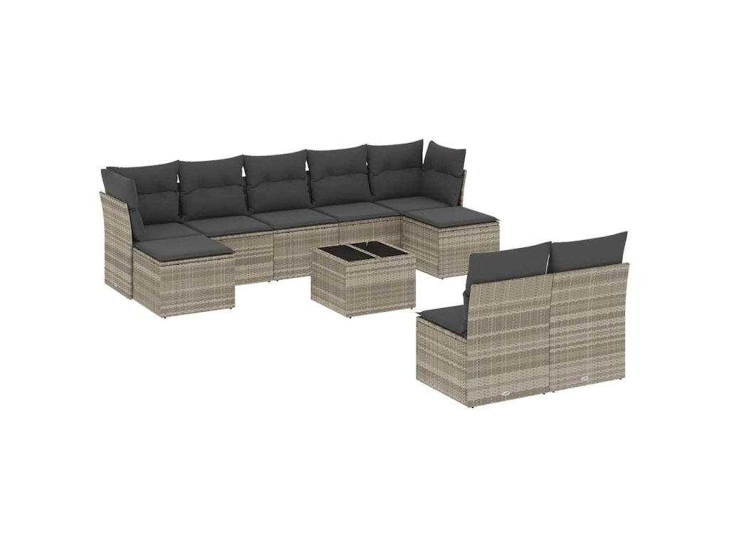 10dílná zahradní sedací souprava podušky světle šedá polyratan 3250121