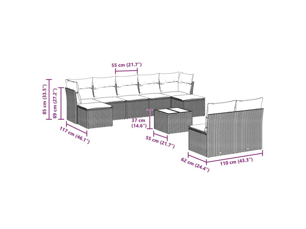 Tato zahradní sedací souprava je dokonalým doplňkem vaší zahrady, terasy nebo dvorku a poskytne vám pohodlné a příjemné místo, kde si můžete povídat s rodinou a přáteli nebo jen tak odpočívat a užívat si pobyt venku.