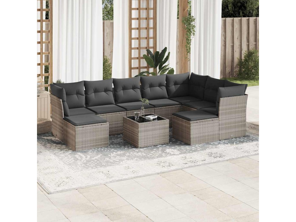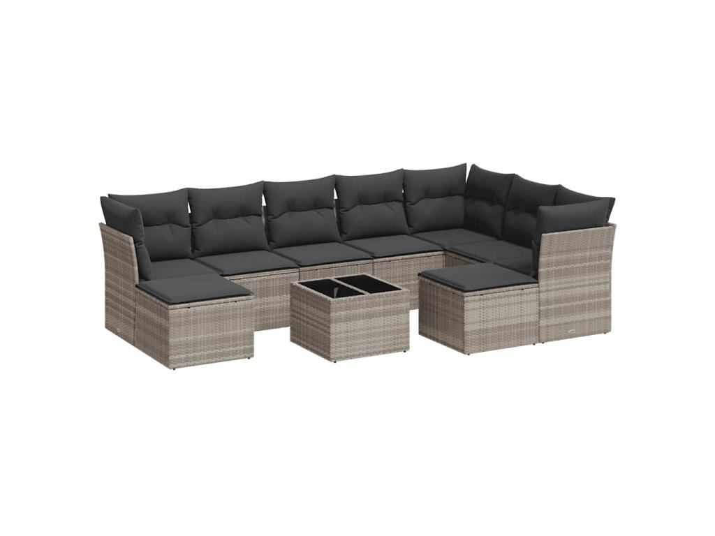 10dílná zahradní sedací souprava podušky světle šedá polyratan 3250421