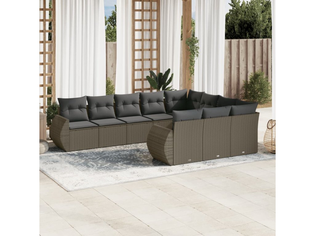 10dílná zahradní sedací souprava podušky světle šedá polyratan 3254229