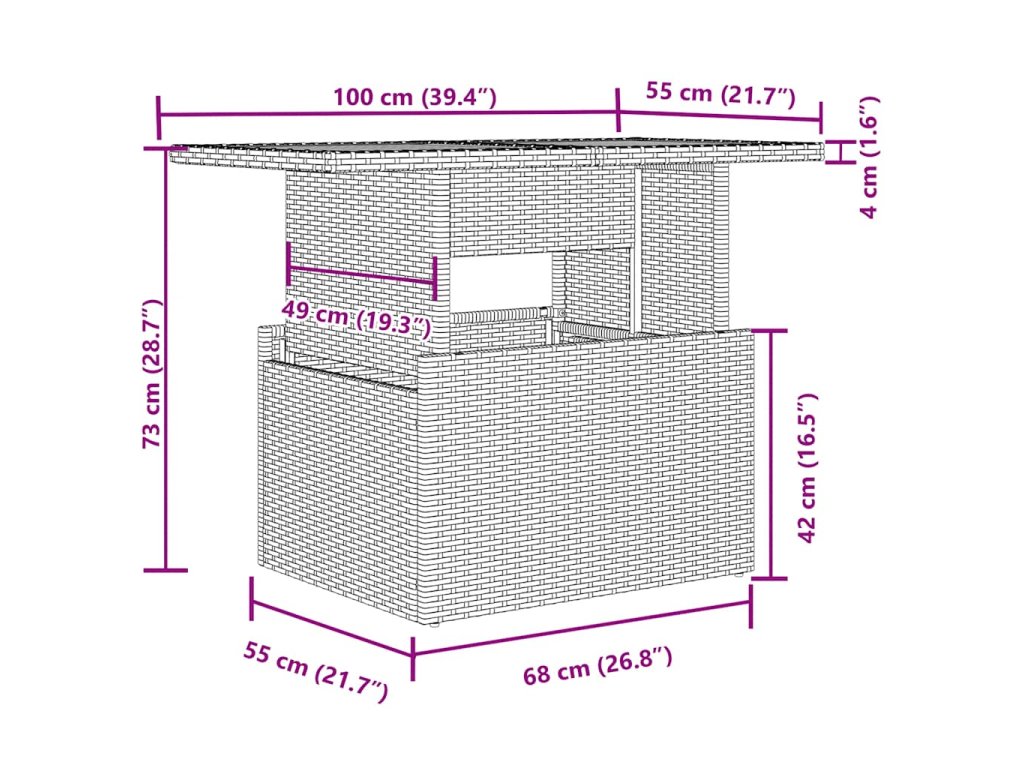 - Rozměry: 100 x 55 x 44/73 cm (D x Š x V)