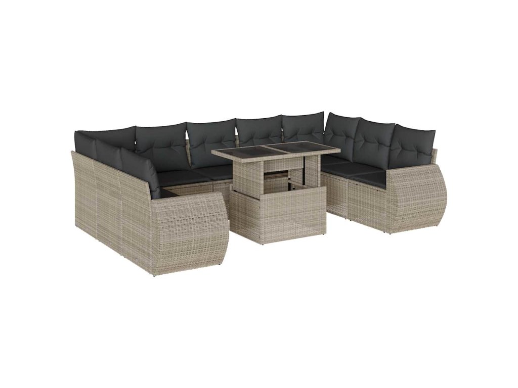 10dílná zahradní sedací souprava podušky světle šedá polyratan 3268742