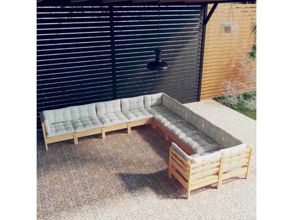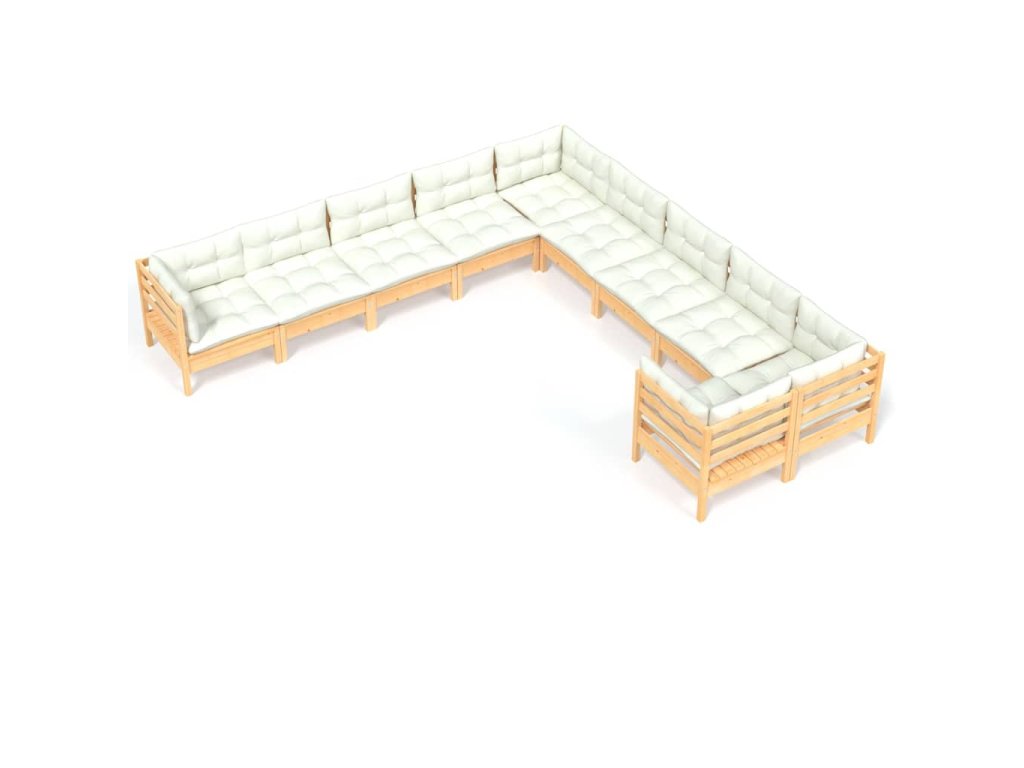 10dílná zahradní sedací souprava s krémovými poduškami borovice 3097007