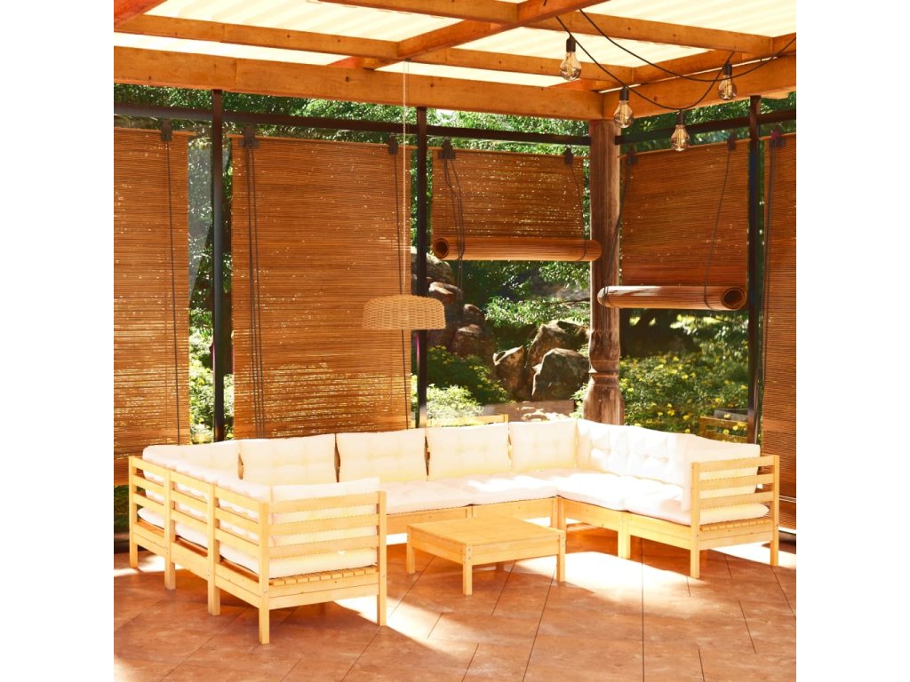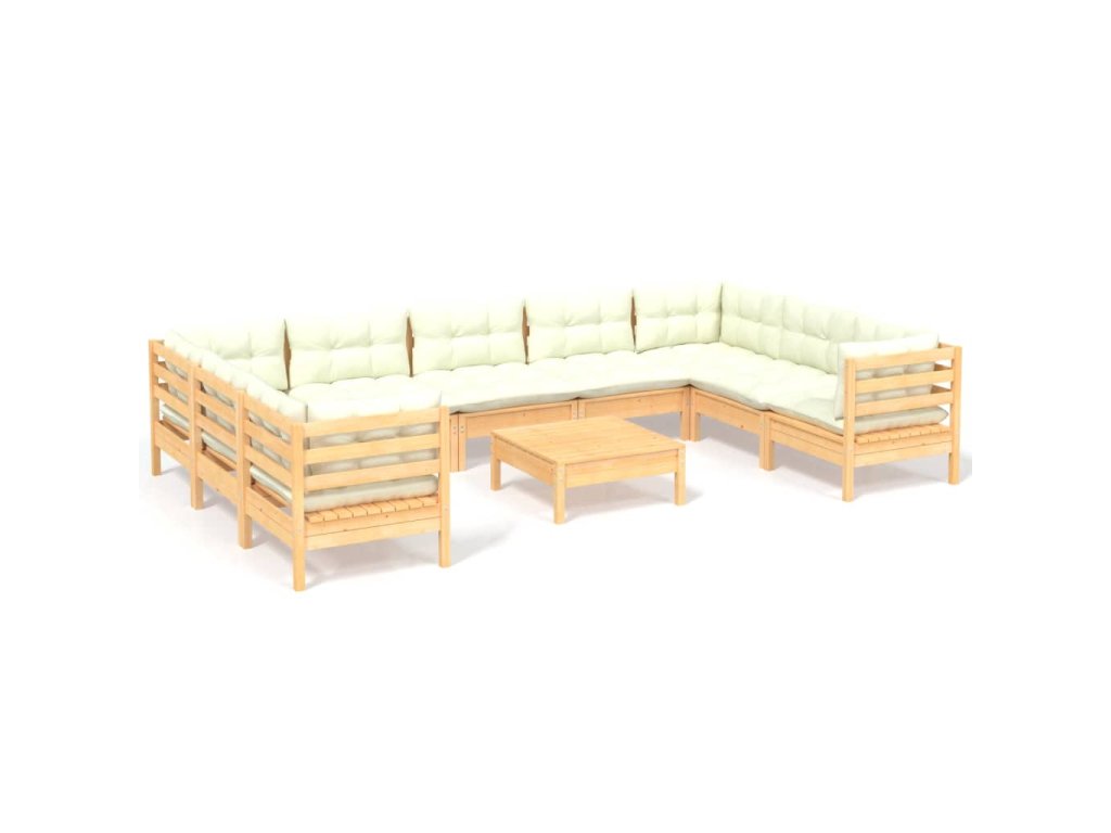10dílná zahradní sedací souprava s krémovými poduškami borovice 3097325
