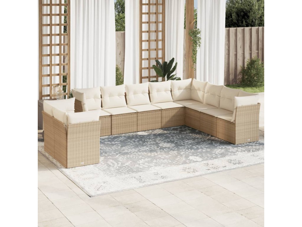 10dílná zahradní sedací souprava s poduškami béžová polyratan 3217858