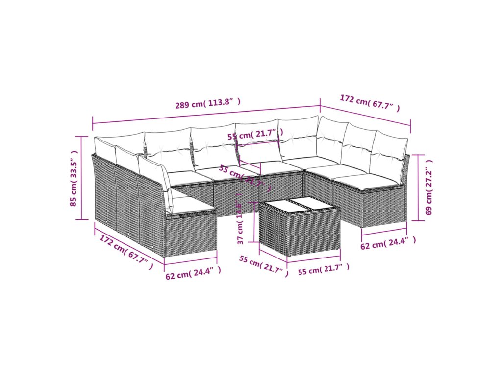 10dílná zahradní sedací souprava s poduškami béžová polyratan 3218079