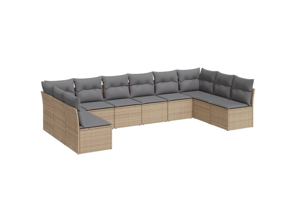 10dílná zahradní sedací souprava s poduškami béžová polyratan 3218089
