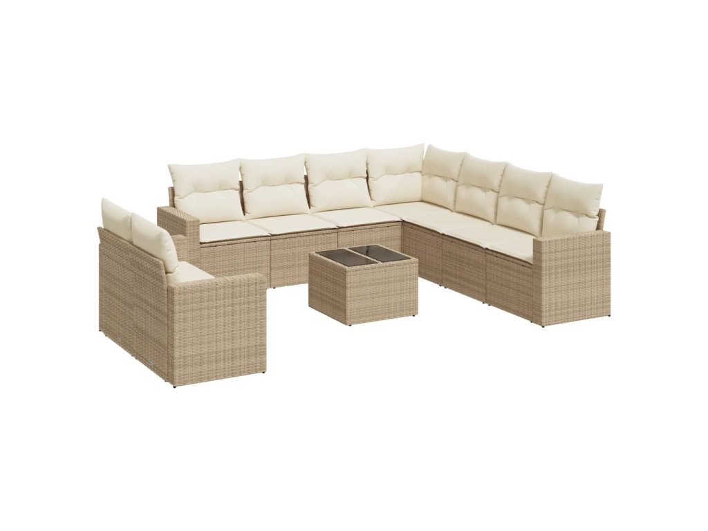 10dílná zahradní sedací souprava s poduškami béžová polyratan 3219148