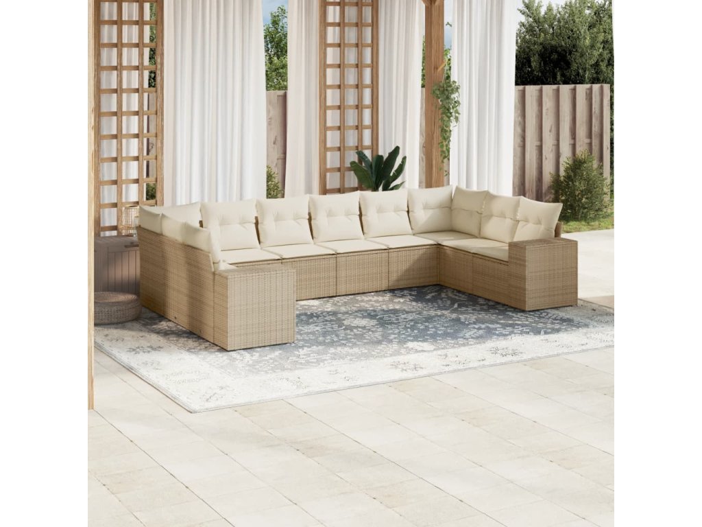 10dílná zahradní sedací souprava s poduškami béžová polyratan 3223067
