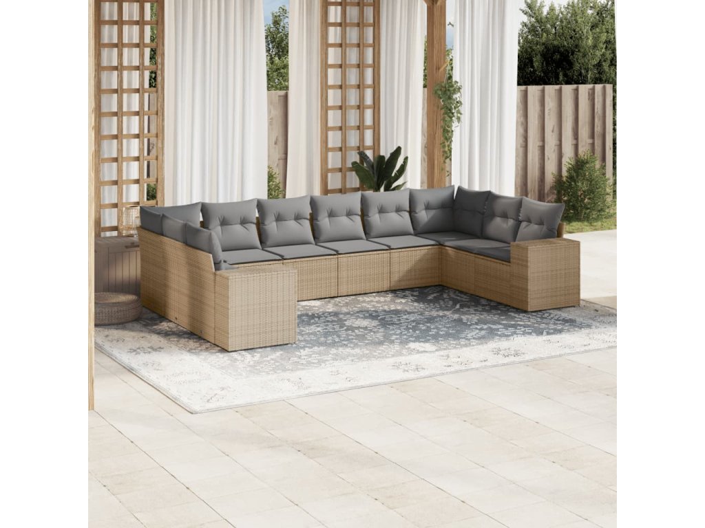 10dílná zahradní sedací souprava s poduškami béžová polyratan 3223068