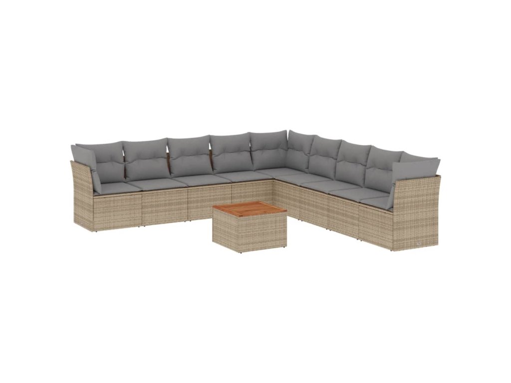 10dílná zahradní sedací souprava s poduškami béžová polyratan 3223693
