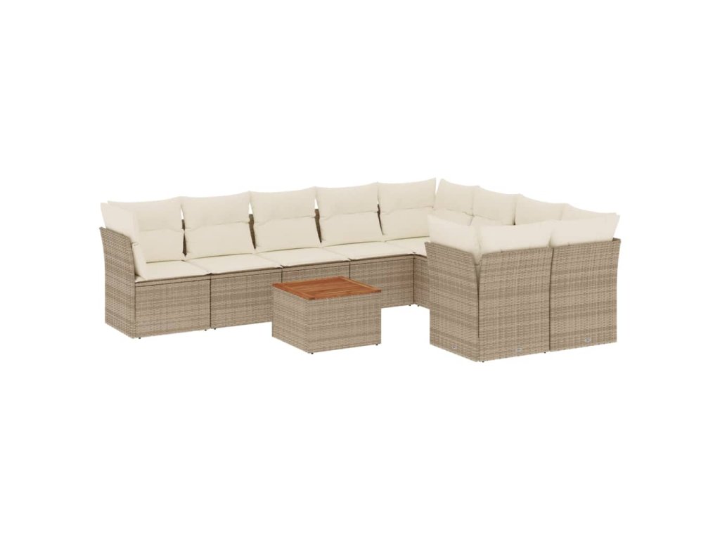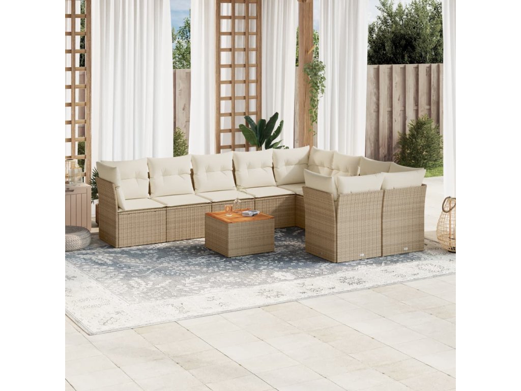 10dílná zahradní sedací souprava s poduškami béžová polyratan 3223818