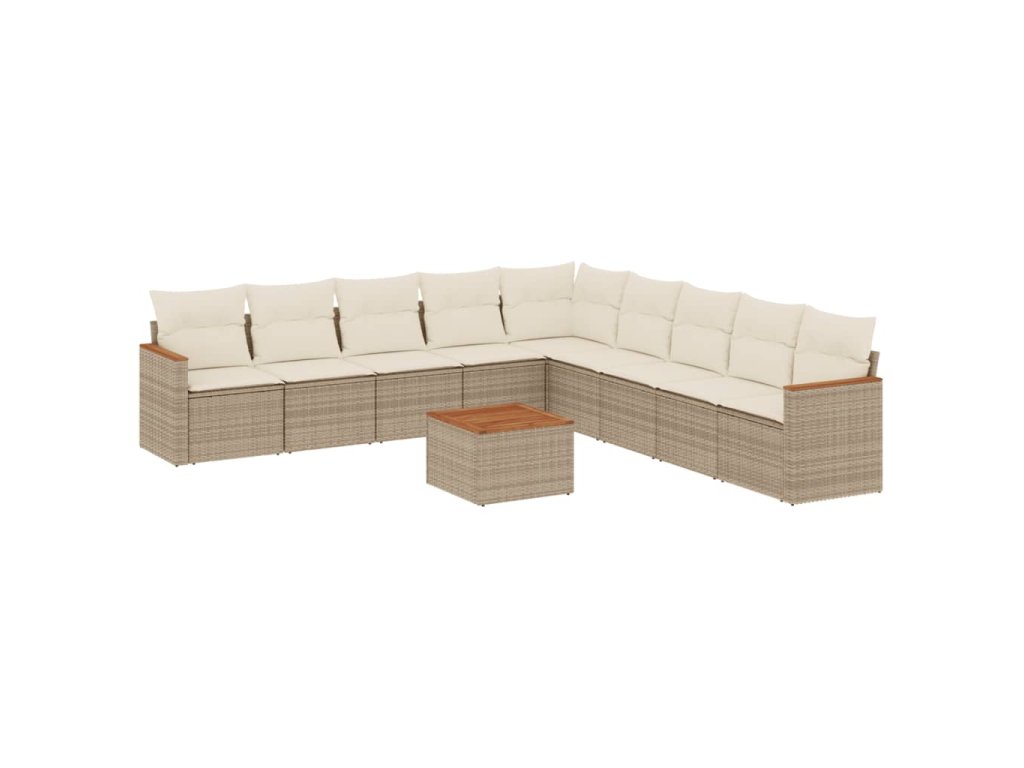 10dílná zahradní sedací souprava s poduškami béžová polyratan 3226065