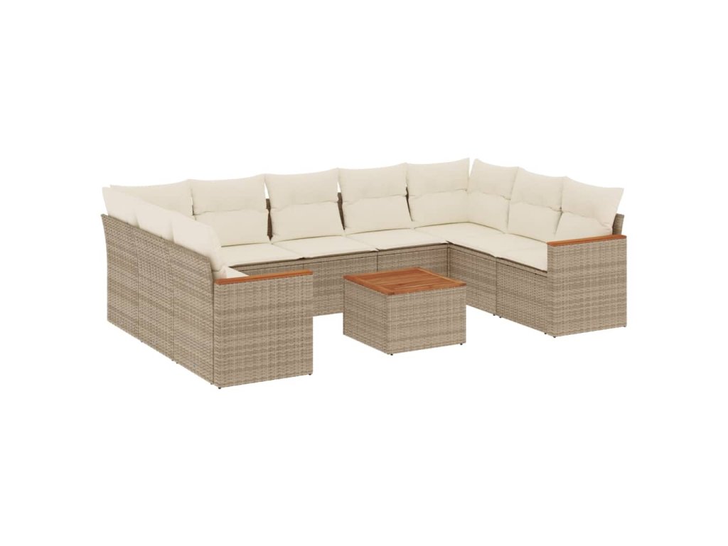 10dílná zahradní sedací souprava s poduškami béžová polyratan 3226282