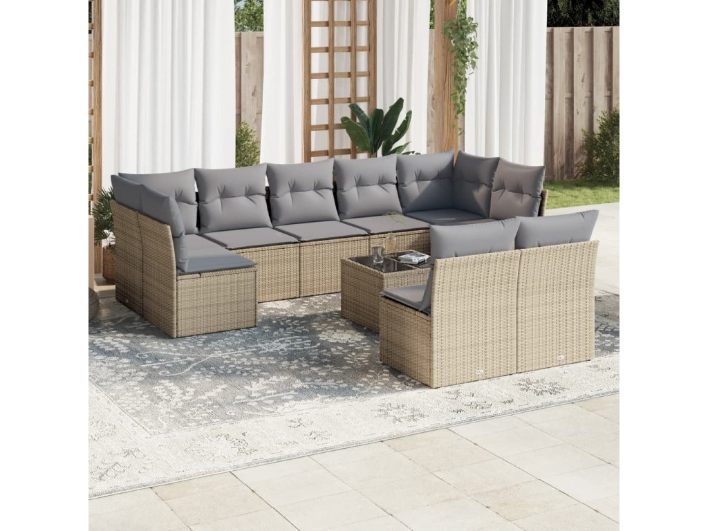10dílná zahradní sedací souprava s poduškami béžová polyratan 3249998