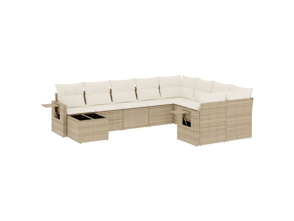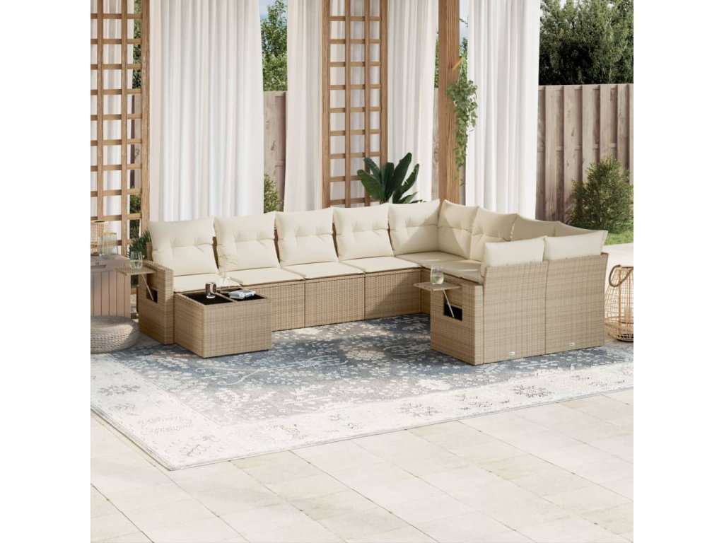 10dílná zahradní sedací souprava s poduškami béžová polyratan 3252995