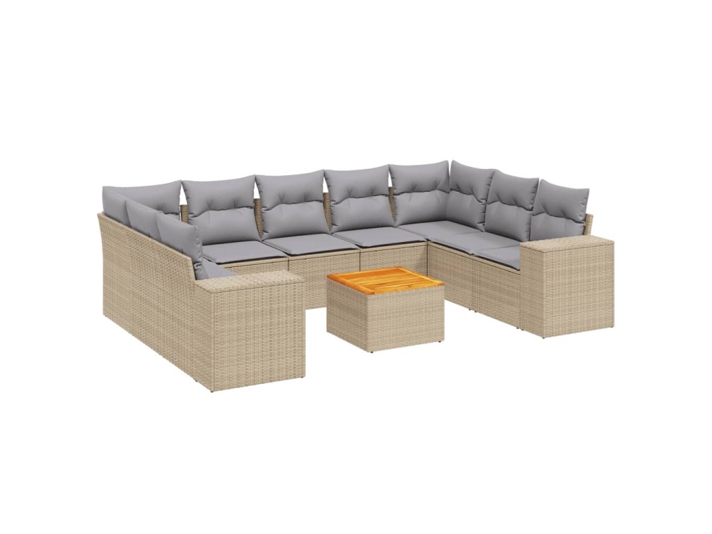 10dílná zahradní sedací souprava s poduškami béžová polyratan 3257921