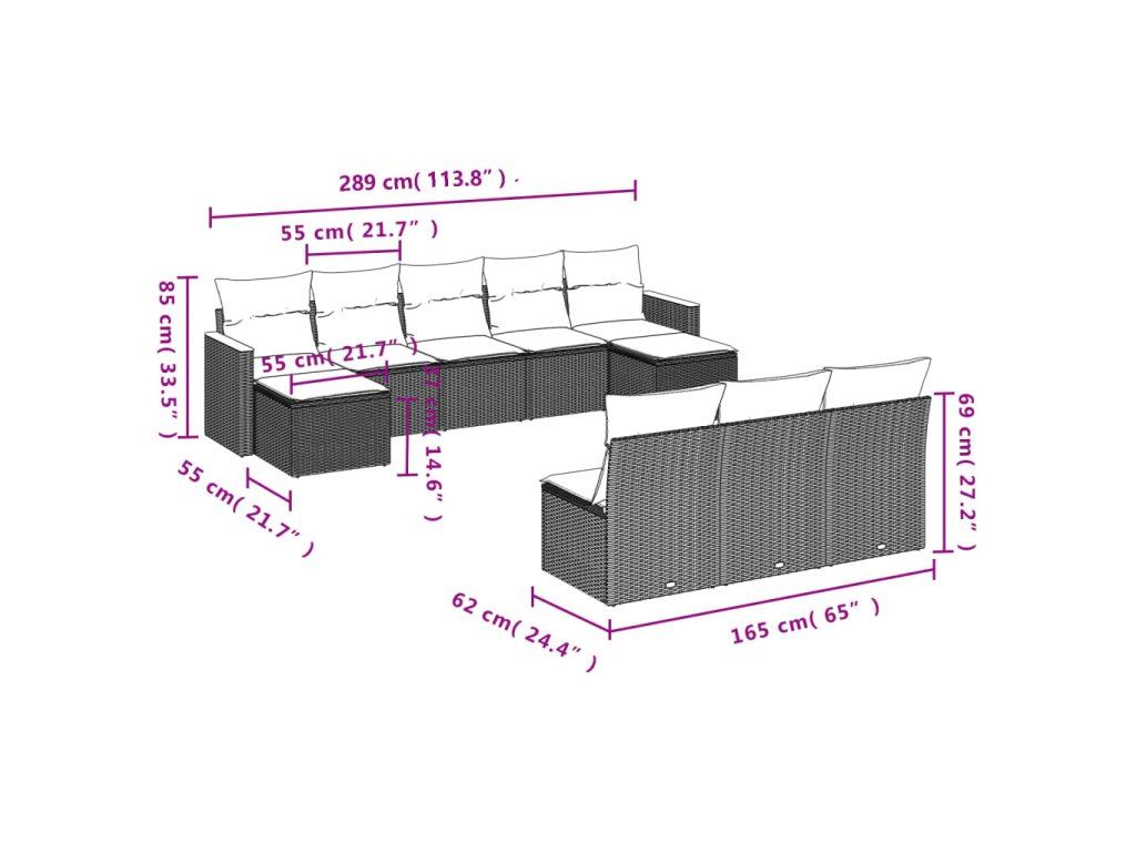 Tato zahradní sedací souprava je dokonalým doplňkem vaší zahrady, terasy nebo dvorku a poskytne vám pohodlné a příjemné místo, kde si můžete povídat s rodinou a přáteli nebo jen tak odpočívat a užívat si pobyt venku.