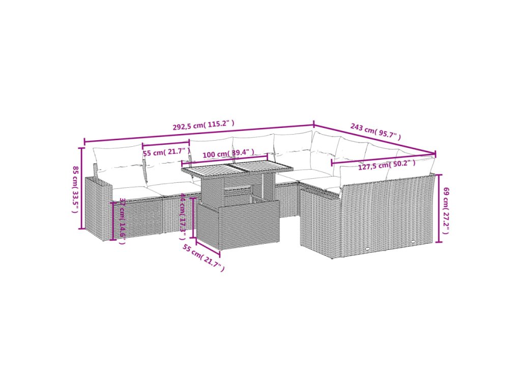 Tato zahradní sedací souprava je dokonalým doplňkem vaší zahrady, terasy nebo dvorku a poskytne vám pohodlné a příjemné místo, kde si můžete povídat s rodinou a přáteli nebo jen tak odpočívat a užívat si pobyt venku.