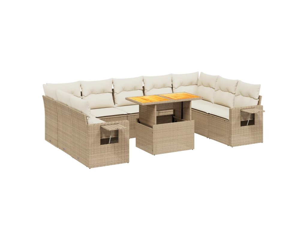 10dílná zahradní sedací souprava s poduškami béžová polyratan 3271898