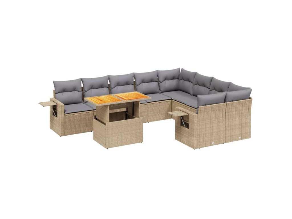 10dílná zahradní sedací souprava s poduškami béžová polyratan 3271913