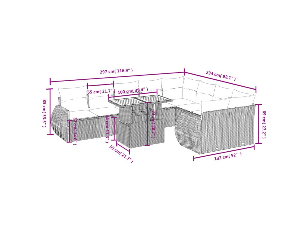 10dílná zahradní sedací souprava s poduškami béžová polyratan 3272354