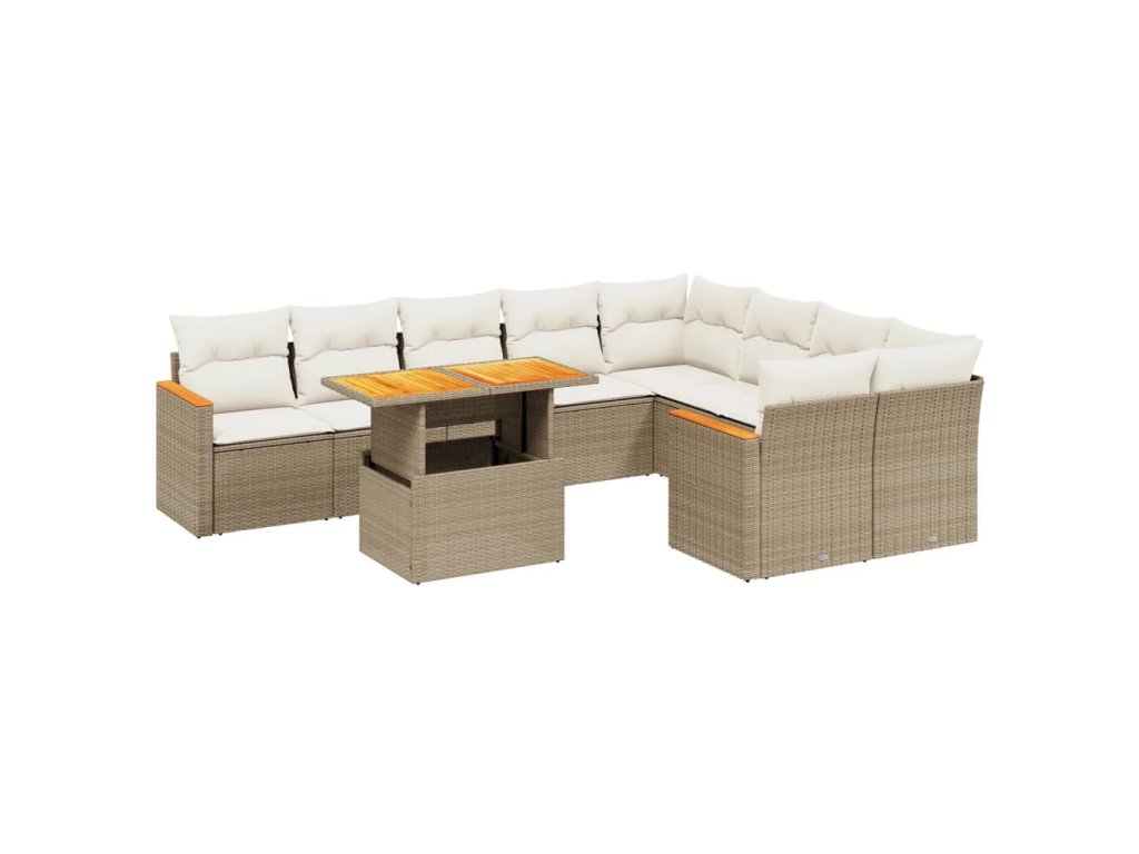10dílná zahradní sedací souprava s poduškami béžová polyratan 3273235