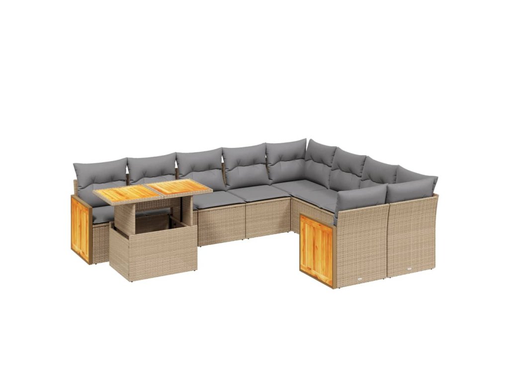 10dílná zahradní sedací souprava s poduškami béžová polyratan 3274125