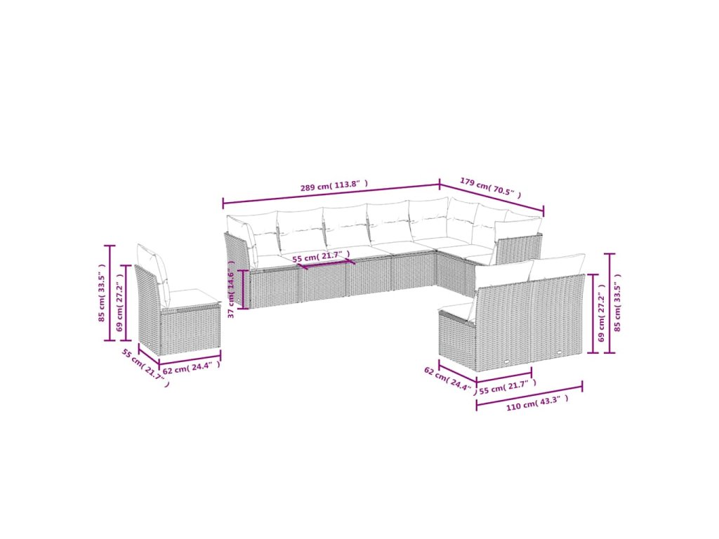 10dílná zahradní sedací souprava s poduškami černá polyratan 3217795
