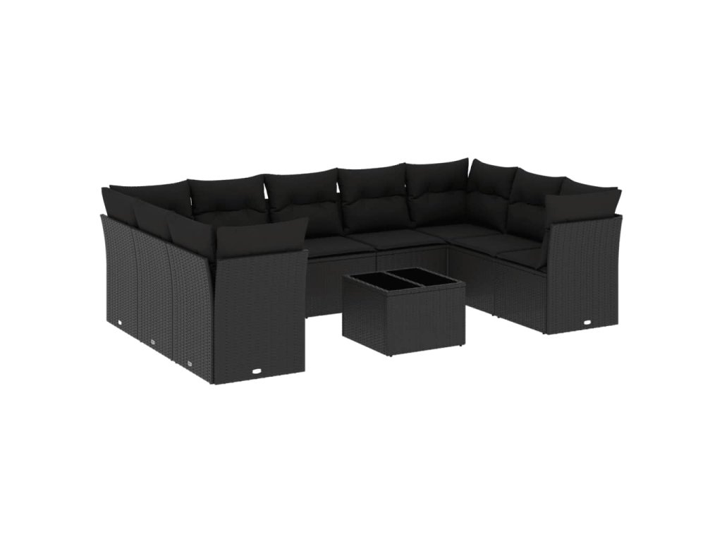10dílná zahradní sedací souprava s poduškami černá polyratan 3218135