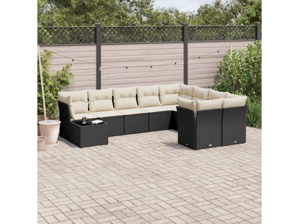 10dílná zahradní sedací souprava s poduškami černá polyratan 3218186