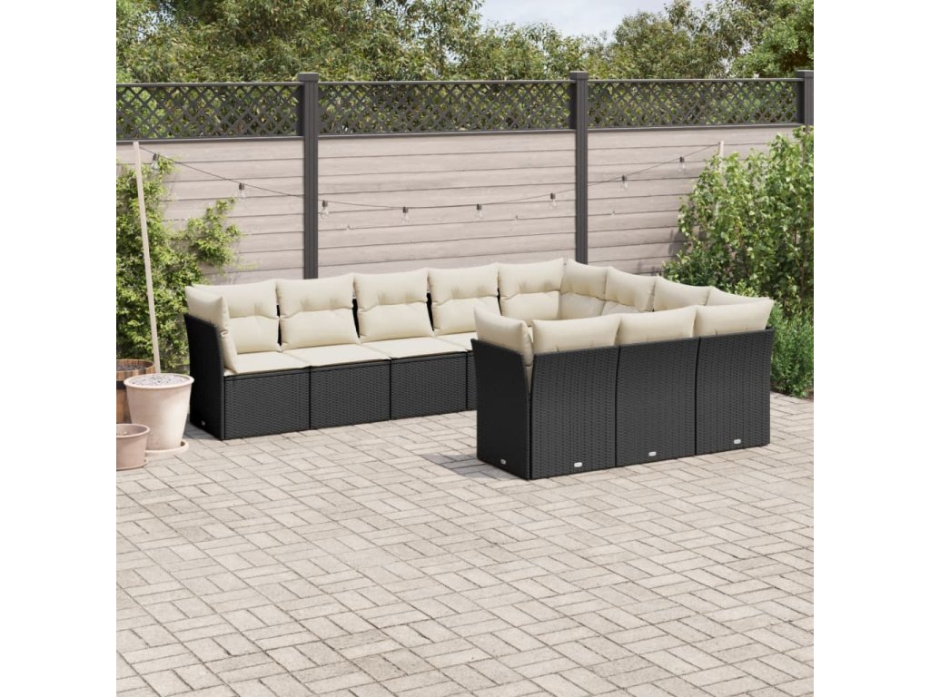 10dílná zahradní sedací souprava s poduškami černá polyratan 3218216