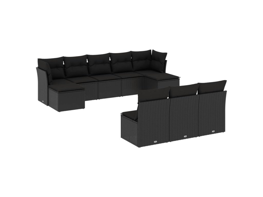 10dílná zahradní sedací souprava s poduškami černá polyratan 3218285