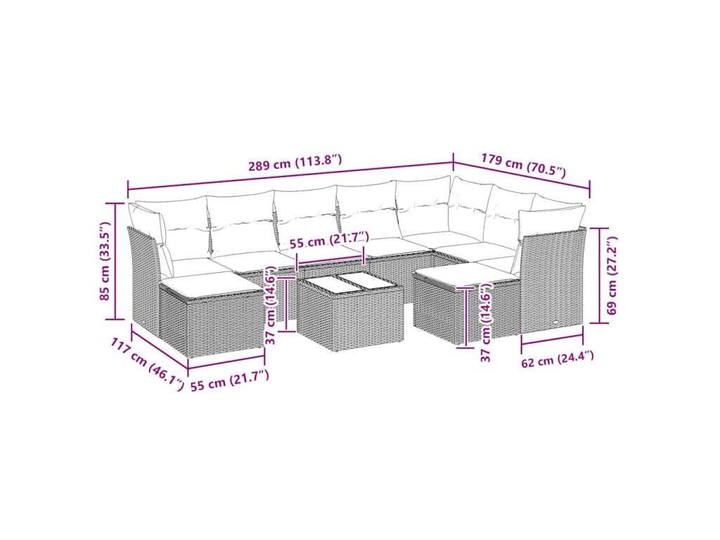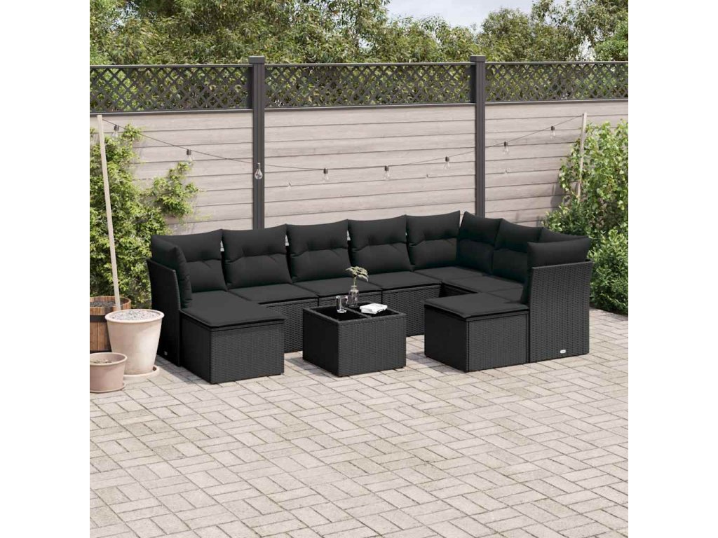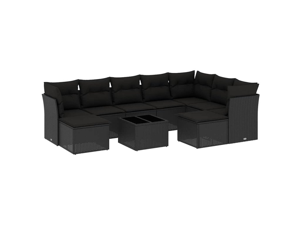 10dílná zahradní sedací souprava s poduškami černá polyratan 3218575