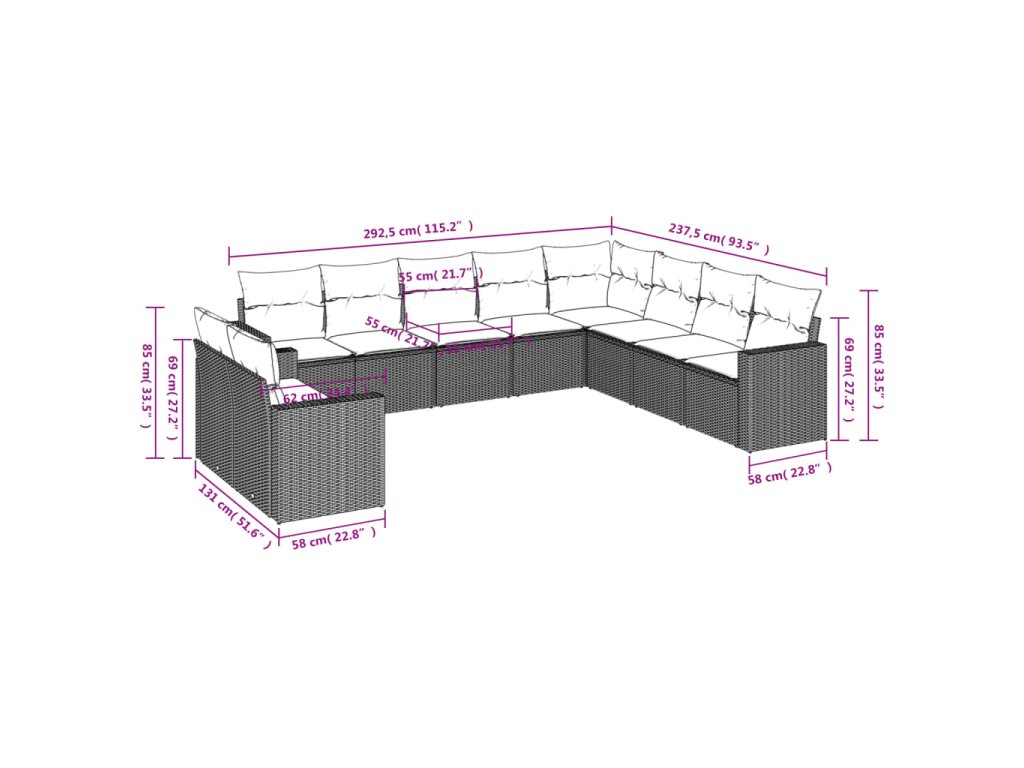 10dílná zahradní sedací souprava s poduškami černá polyratan 3219155