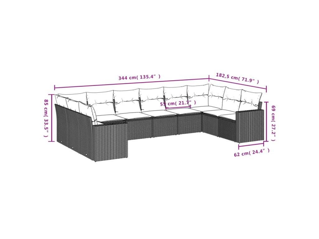 10dílná zahradní sedací souprava s poduškami černá polyratan 3219456