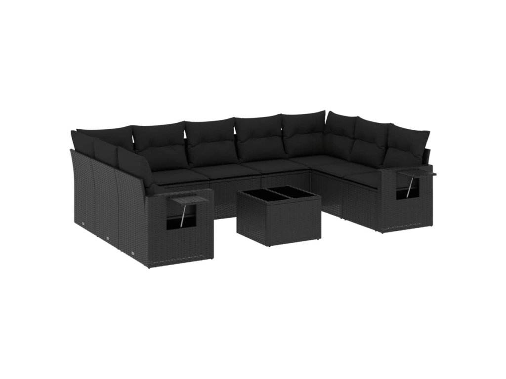 10dílná zahradní sedací souprava s poduškami černá polyratan 3220604